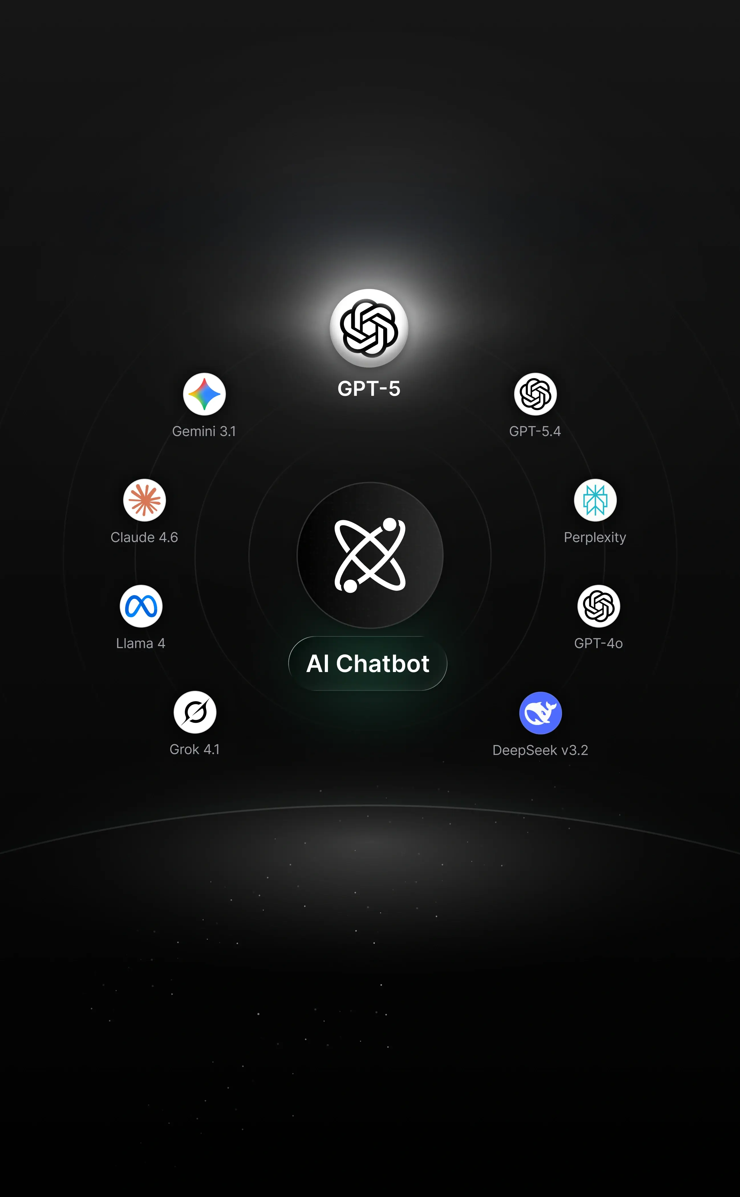 GPT-5, GPT-5.4, DeepSeek-v3.2, Claude Sonnet 4.6, Gemini 3.1 Pro, Grok 4.1, GPT-4o, Perplexity, Kimi K2.5, Llama 3.3